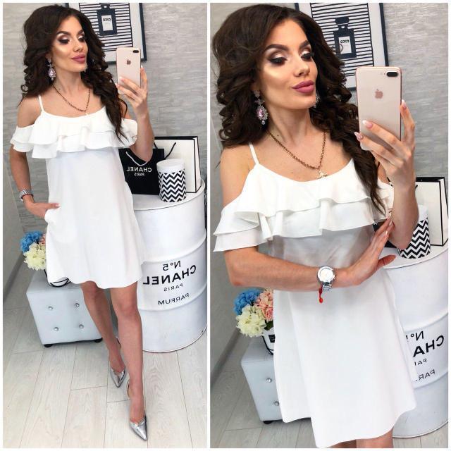 Плаття коротке, літнє з воланом, модель 102, Білий